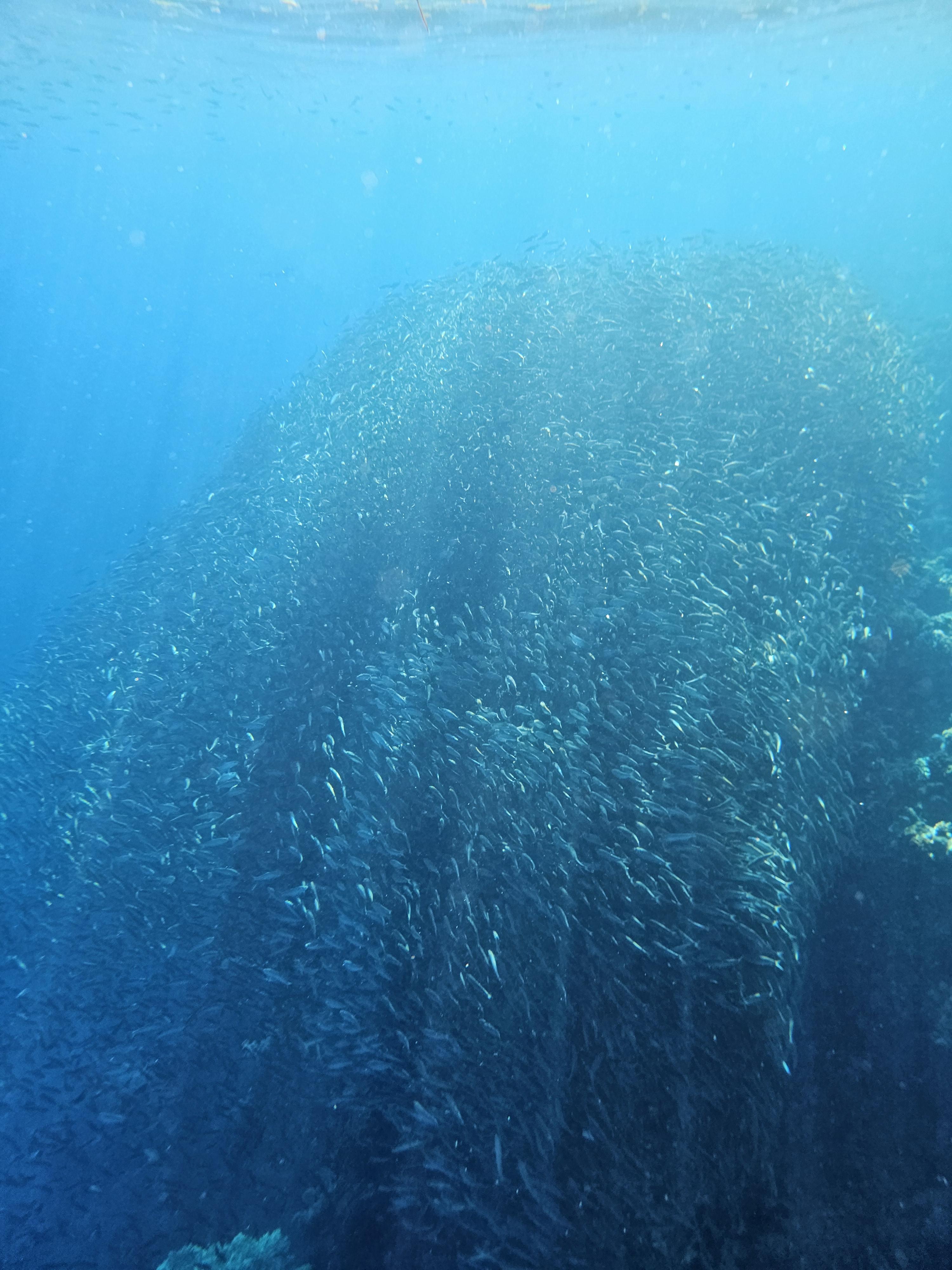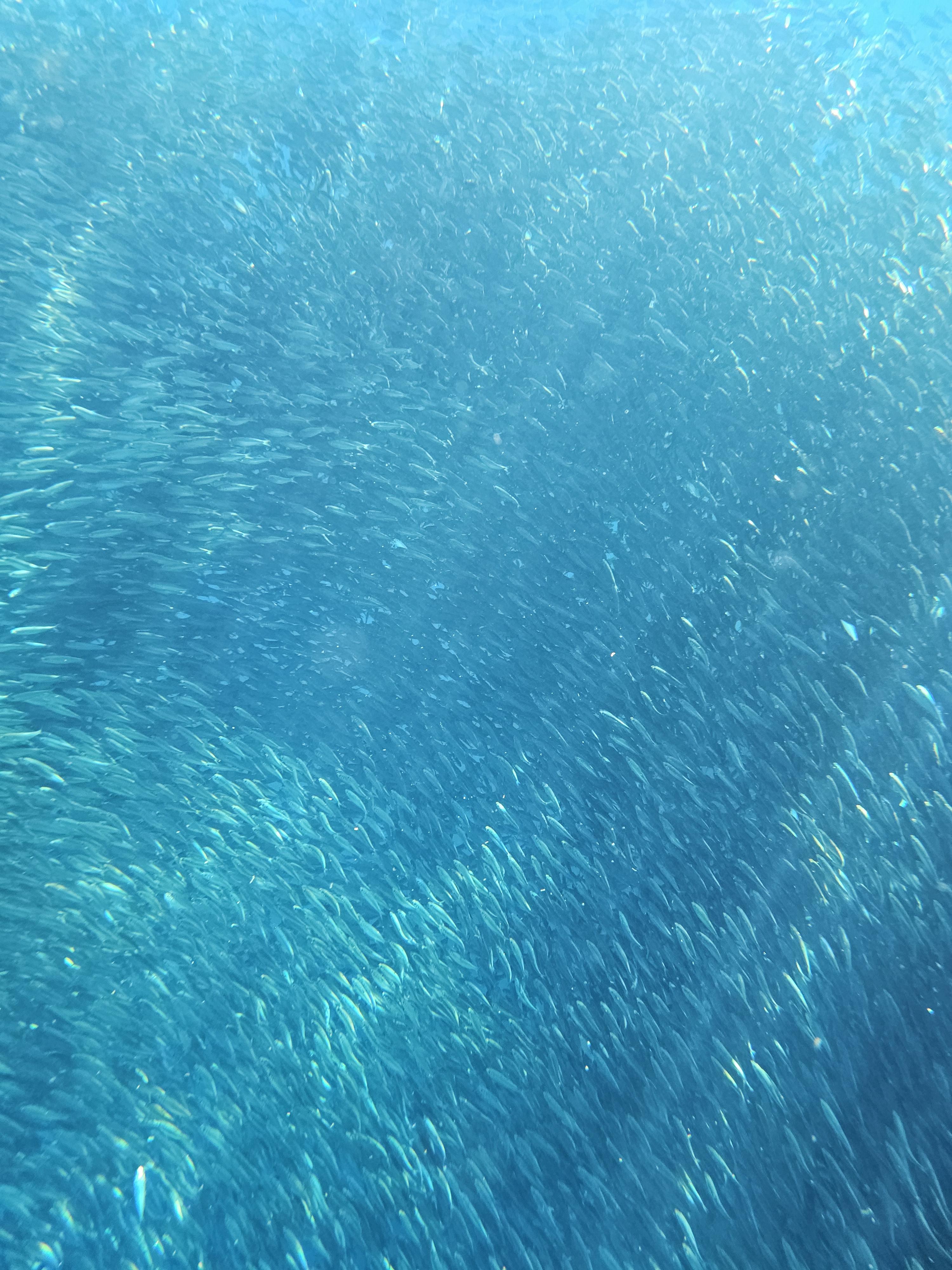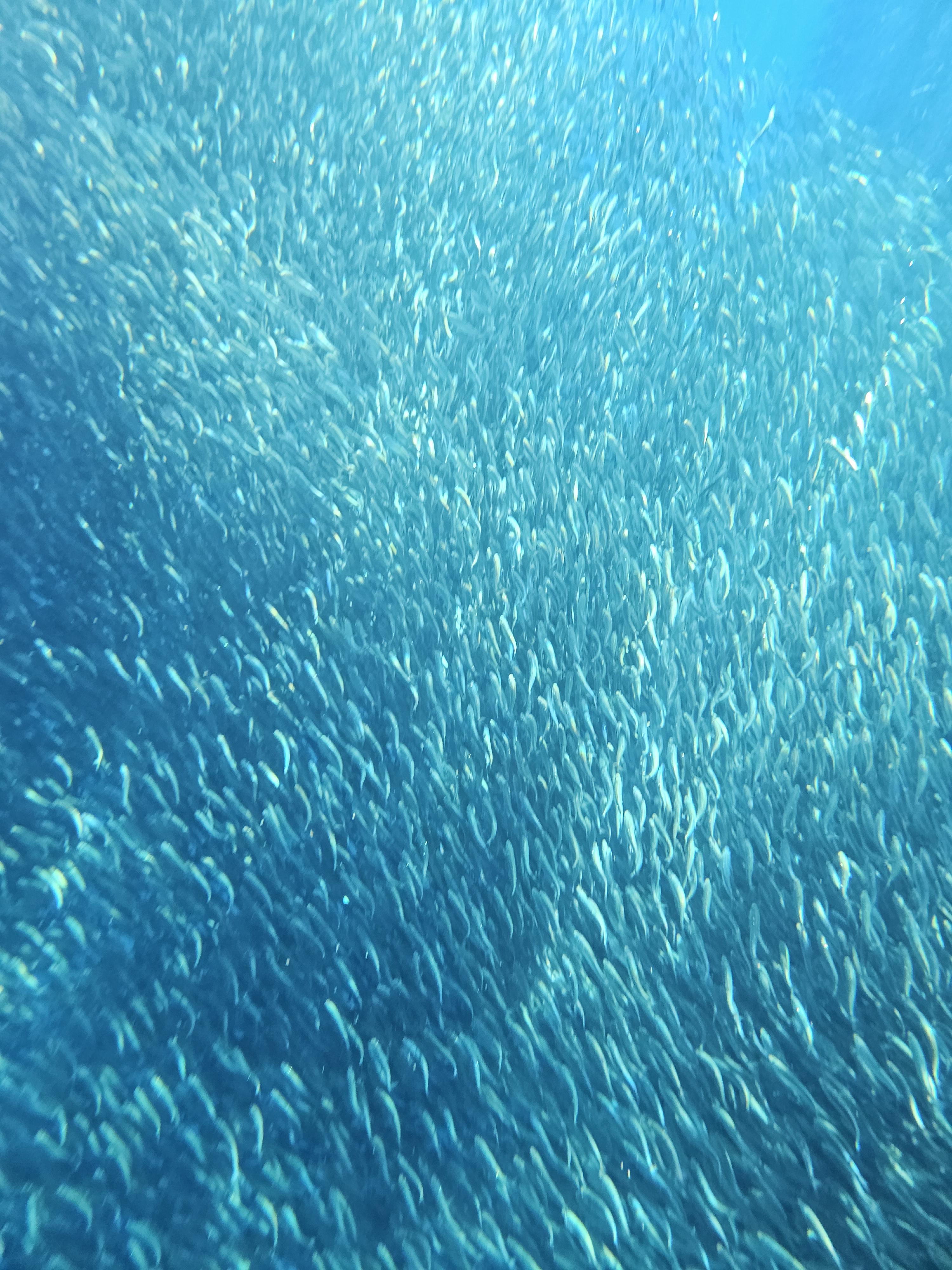 너무나 많은 정어리가 모여있어서 사진 한컷에 담기진 않았지만 동영상에는 그 모습이 담겼다.