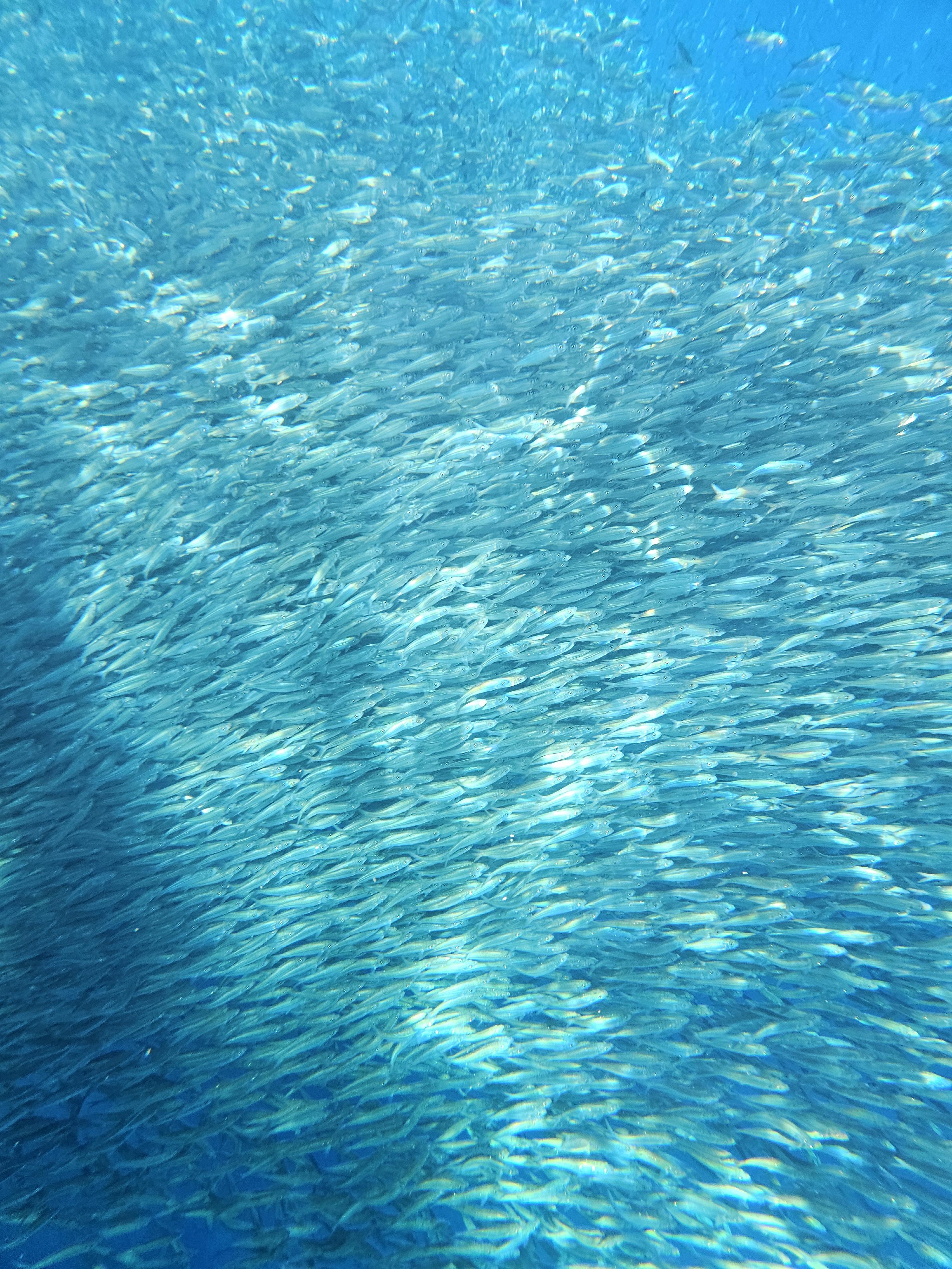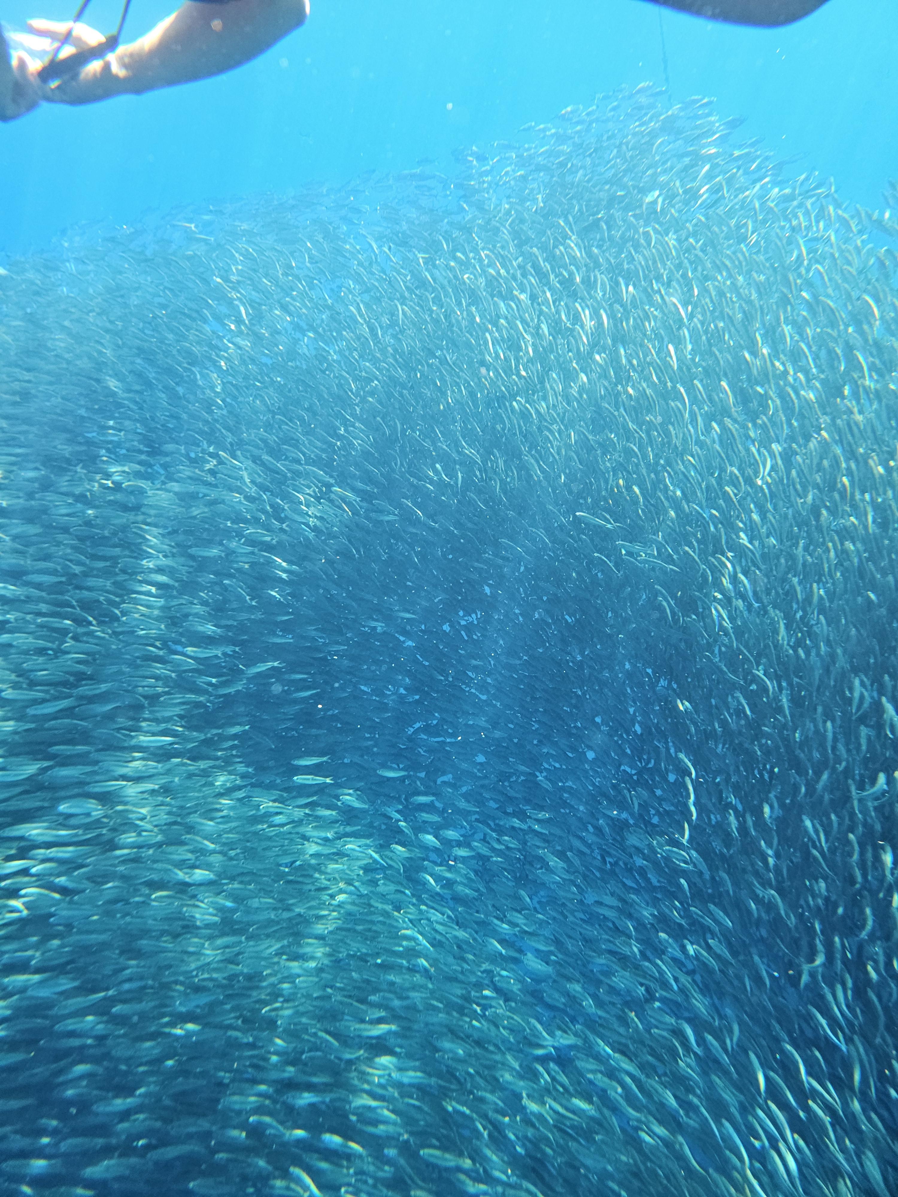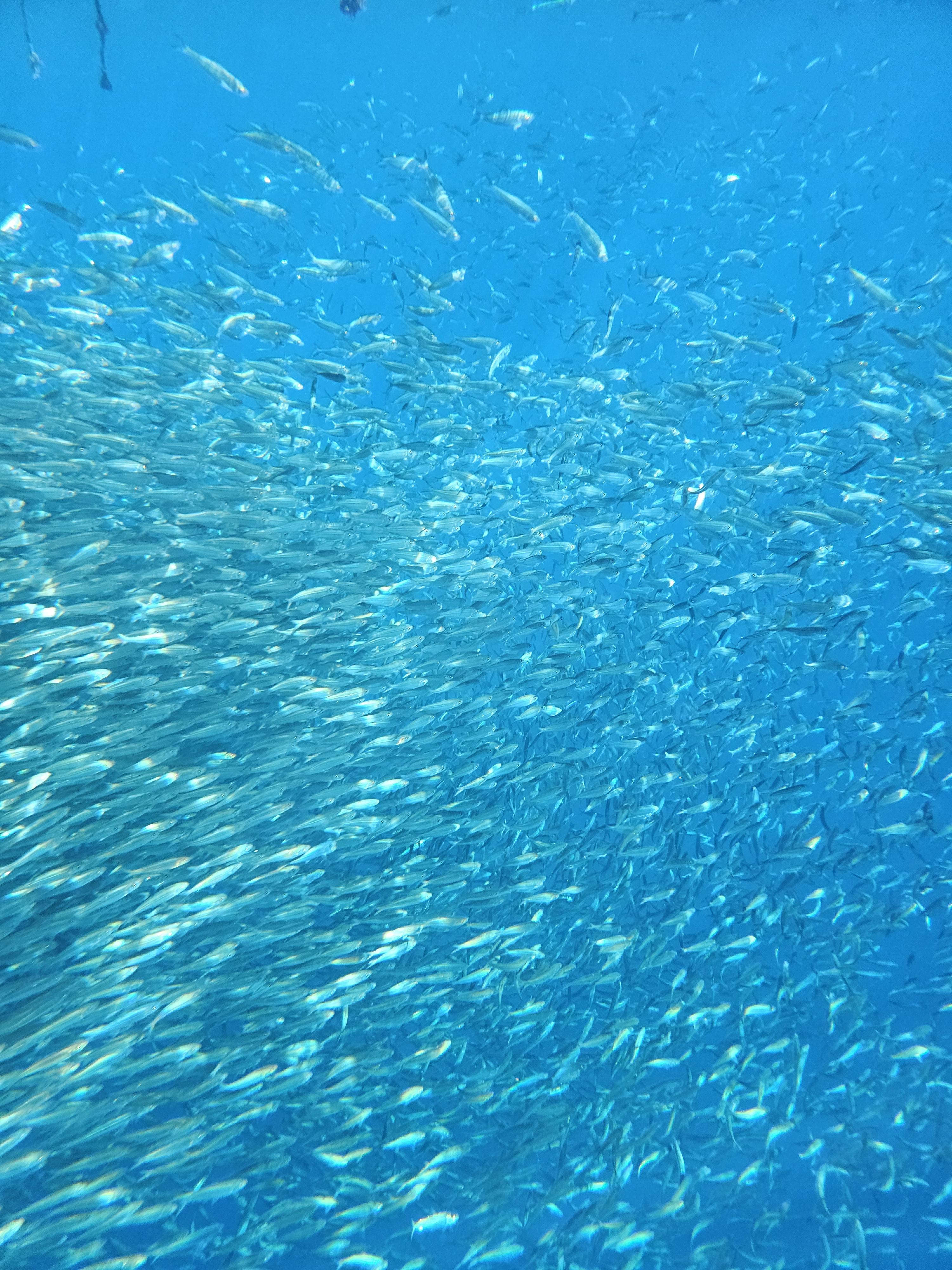 너무나 많은 정어리가 모여있어서 사진 한컷에 담기진 않았지만 동영상에는 그 모습이 담겼다.