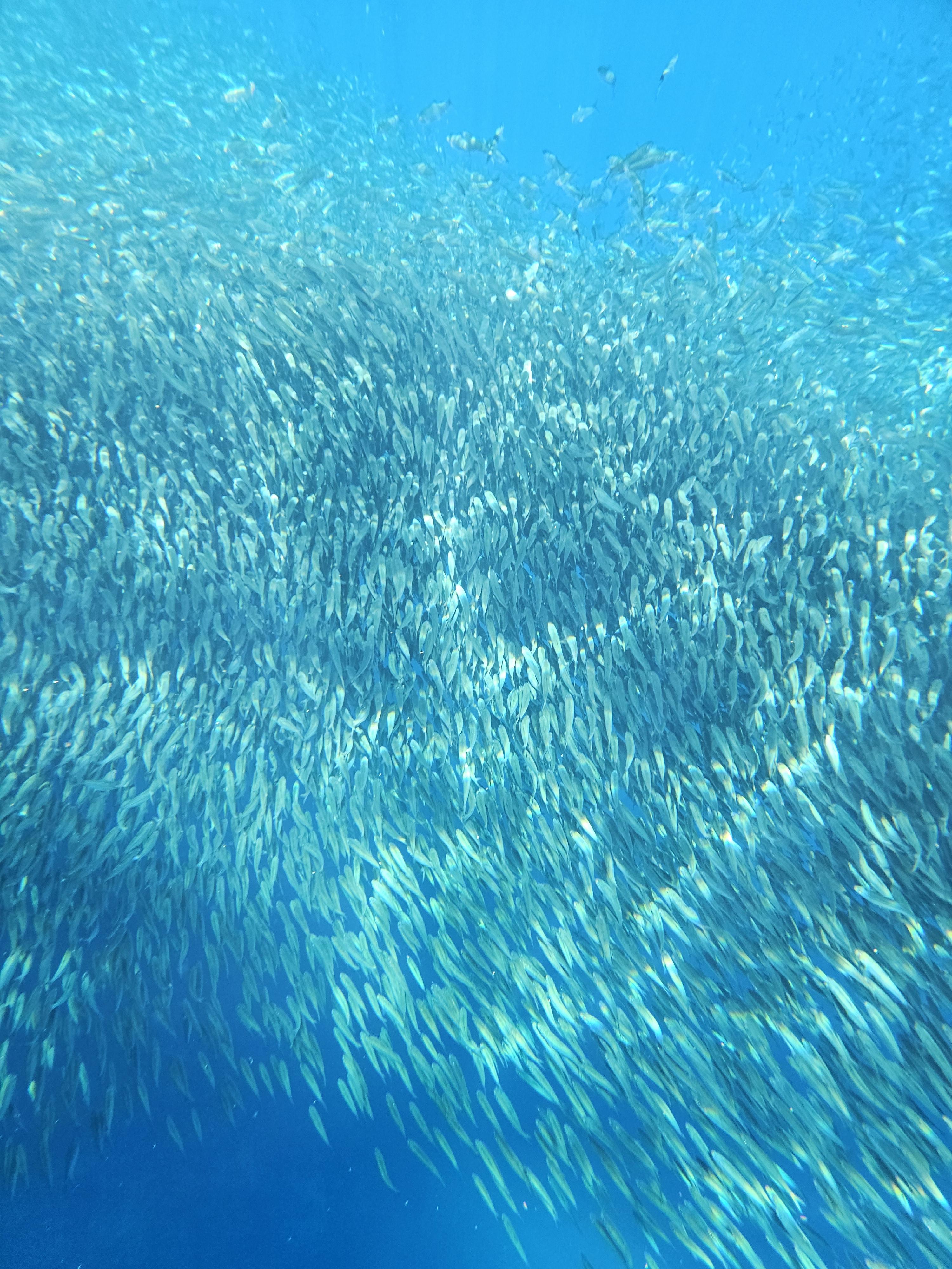 엄청나게 작은 정어리들이 큰 물고기들의 위협에서 벗어나기 위해 뭉쳐서 큰 물고기를 형상시키는 모양으로 움직이는 것도 꽤나 신기한 모습이었다.