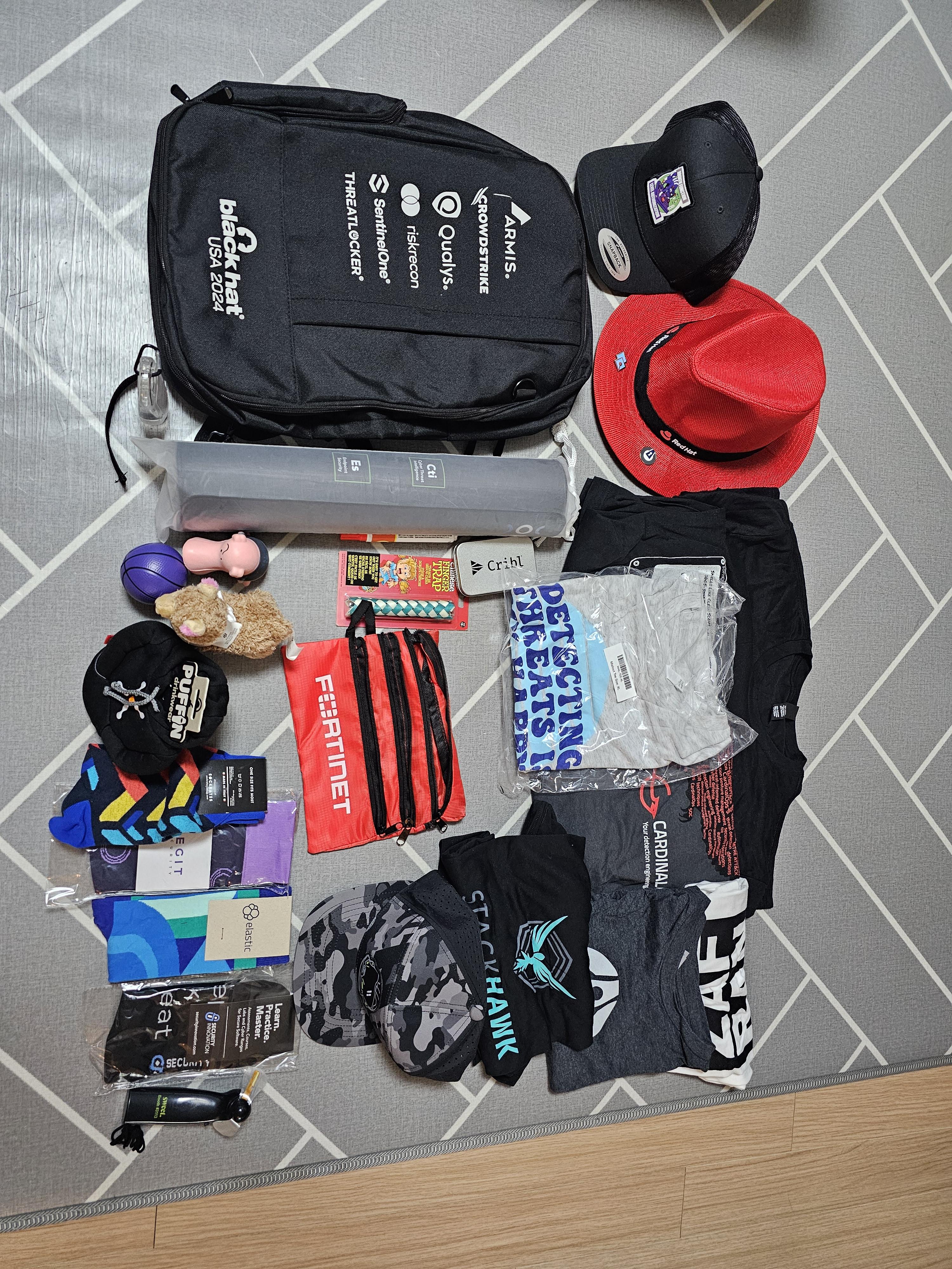 오히려 가서 사온 것 만큼이나 BlackHat 부스에서 받아온 물건들이 더 많다.