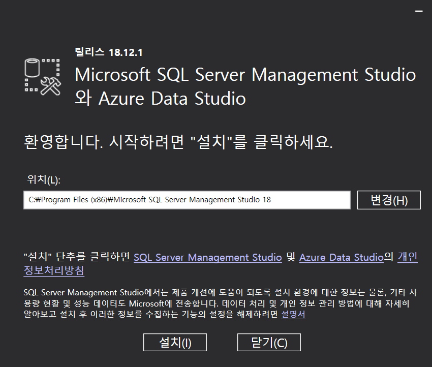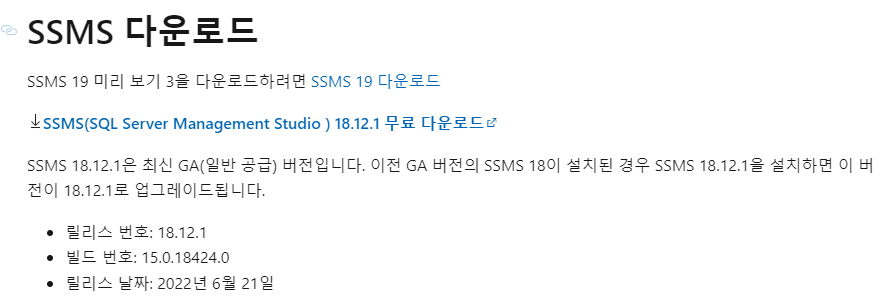 설치 완료 후 하단의 SSMS 설치를 클릭하여 SSMS 설치를 진행한다.