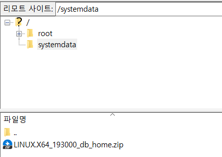 oracle 설치파일을 /systemdata 경로에 업로드 한다.