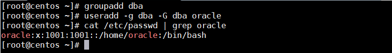dba 그룹을 생성한 후 useradd 를 통해 oracle 유저를 생성한다.