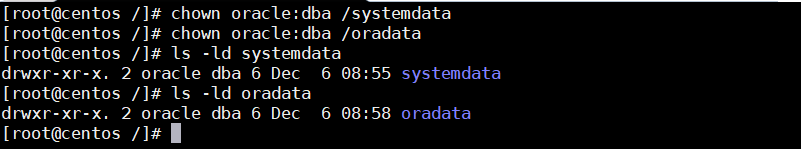 | chown oracle:dba /systemdata chown oracle:dba /oradata |