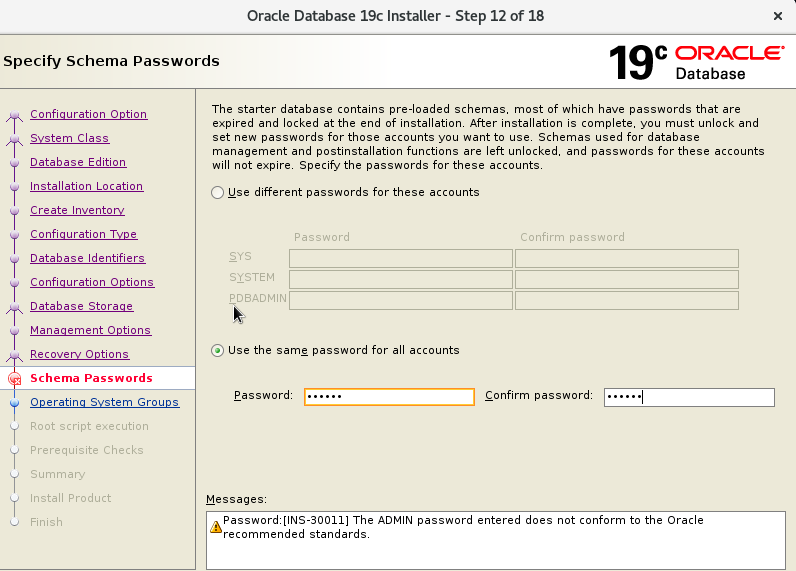Oracle 19c 가 Linux 8 버전 계열에서 지원이 안되서 발생되는 에러메세지로 강제로 7 버전으로 인식하도록 변경해주는 옵션을 추가하여 적용한다.