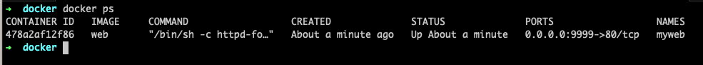 위에 생성한 myweb 의 경우에는 별도로 CMD를 지정하지 않았지만 베이스 이미지에 있는 CMD정보가 저장되어 있음.