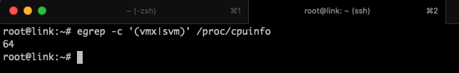 egrep -c '(vmx|svm)' /proc/cpuinfo