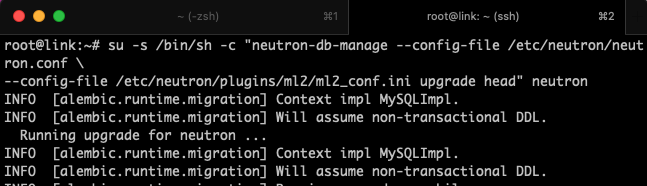 su -s /bin/sh -c "neutron-db-manage --config-file /etc/neutron/neutron.conf \