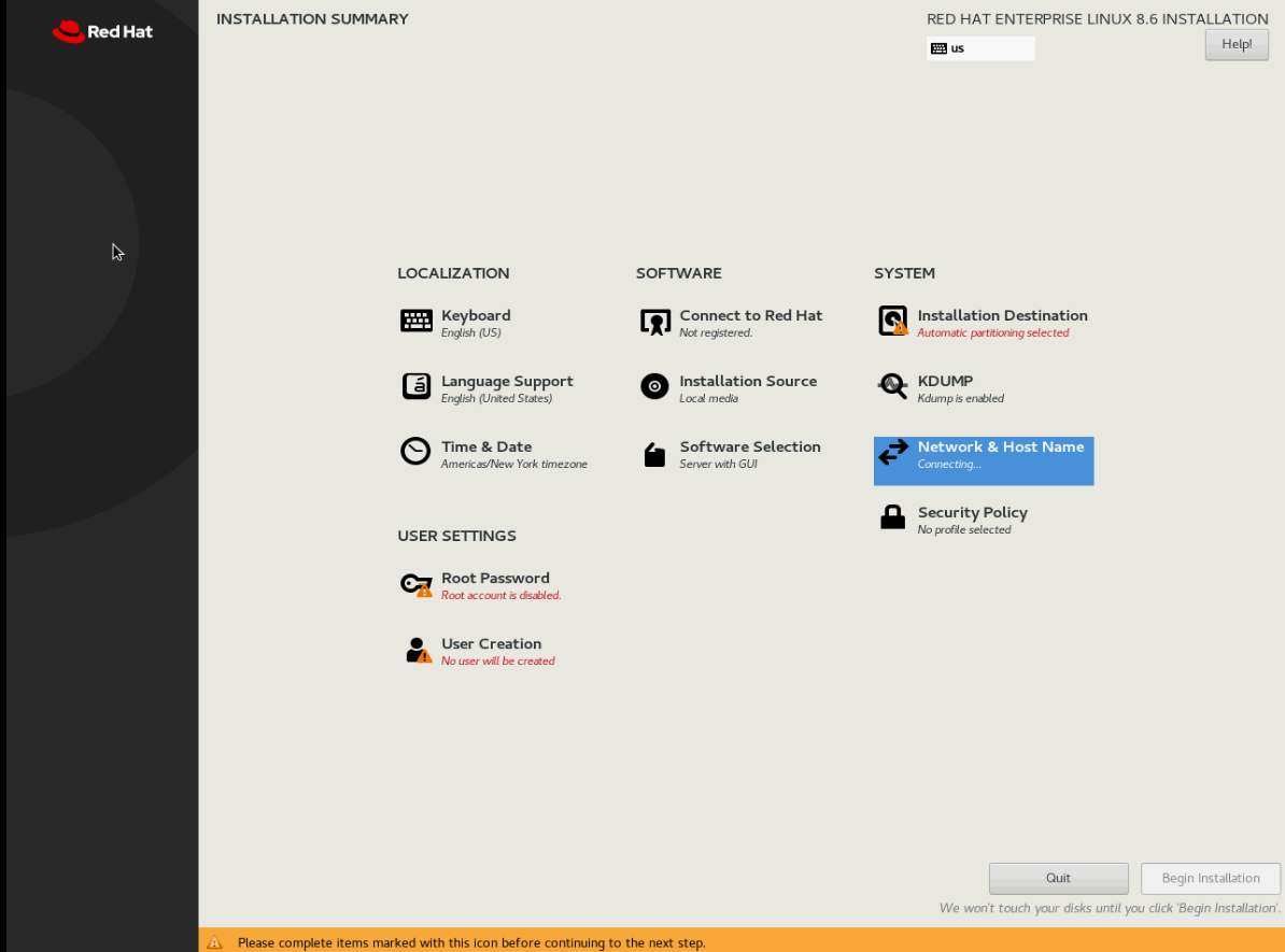 아래와 같이 설정이 완료되었으면 begin installation 을 클릭하여 설치를 진행한다.