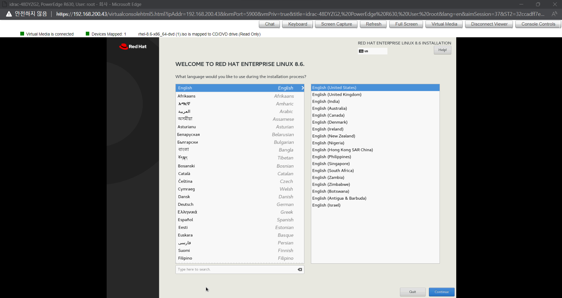 iDRAC 콘솔을 통해 내 PC에 있는 iso 이미지를 마운트 하고 이를 통해 Redhat Linux 를 설치하고자한다.