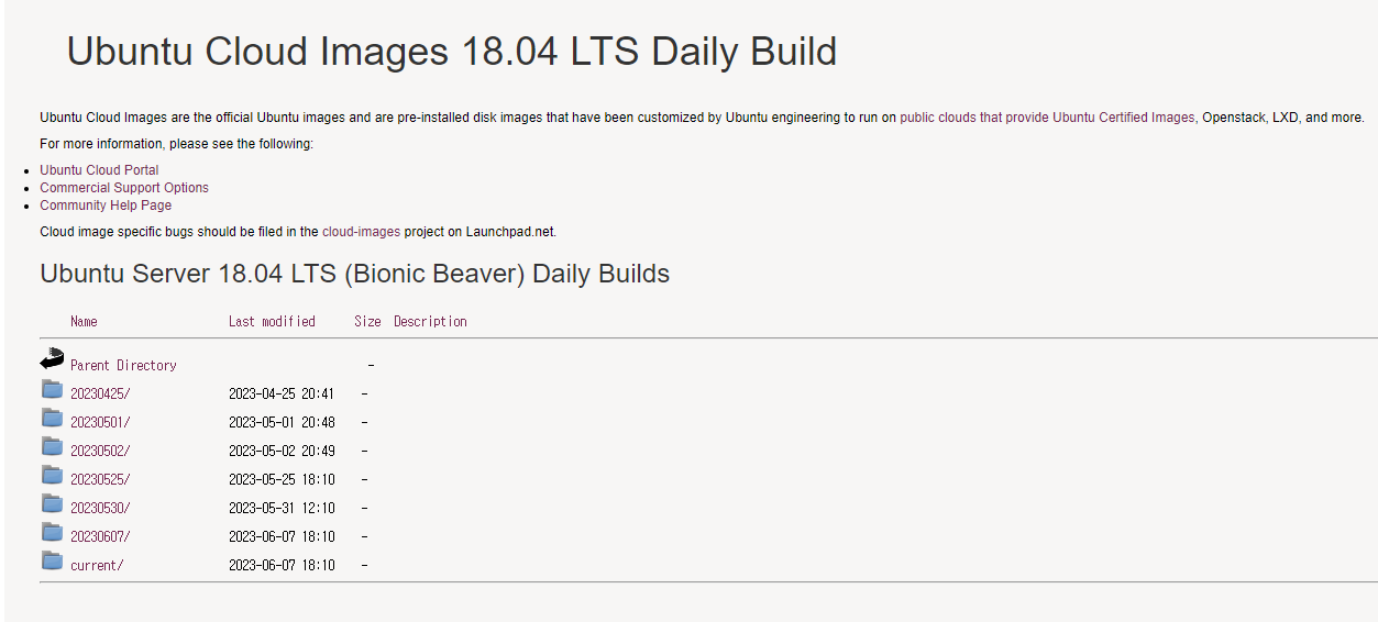 상기 우분투 이미지 다운받는 링크로 이동하면 하기와 같이 각 버전별 이미지를 다운받을 수 있다.