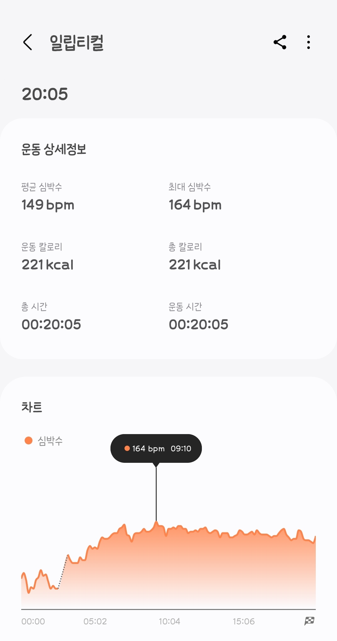 시간이 남아서 오늘은 오랜만에 일립티컬로 유산소도 진행했다.