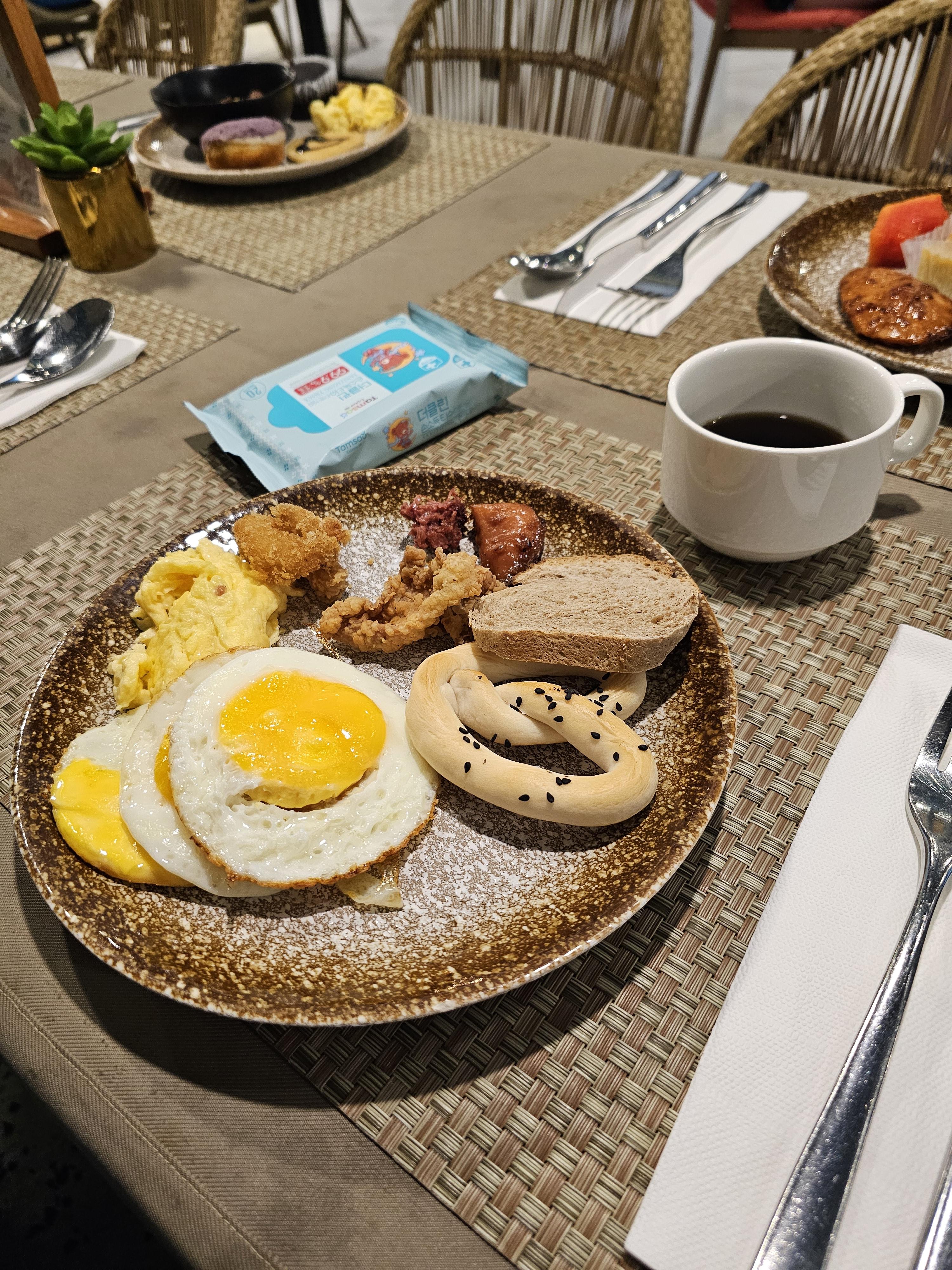 어느 호텔이나 리조트처럼 계란프라이나 스크램블 에그가 있으며 요청하면 오믈렛도 만들어 준다.